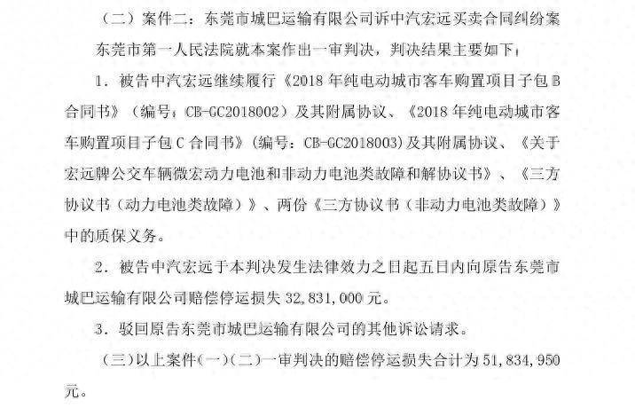 2026年2月9日及12日,龙洲股份先后公告了这三起重大诉讼的一审进展,法院最终作出了部分支持原告诉求的判决。判决明确,中汽宏远需继续履行合同中的质保义务,保障涉案车辆的后续维修维保相关事宜——这也意味着,中汽宏远需持续处理故障车辆的电池维修或更换问题,确保车辆能够正常投入运营。